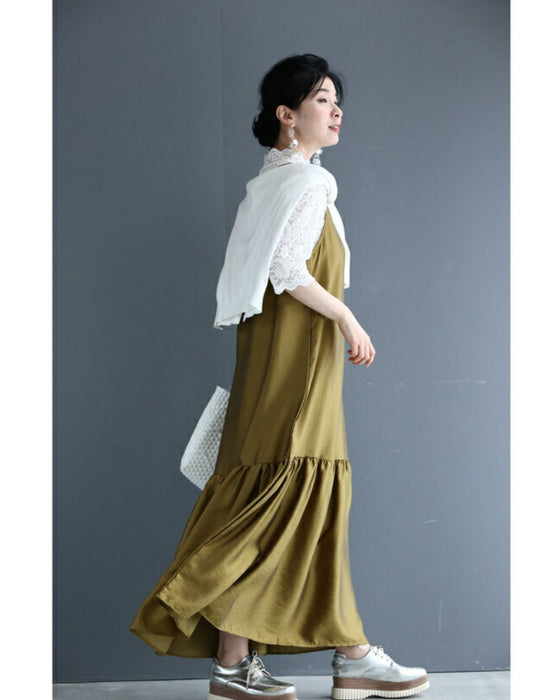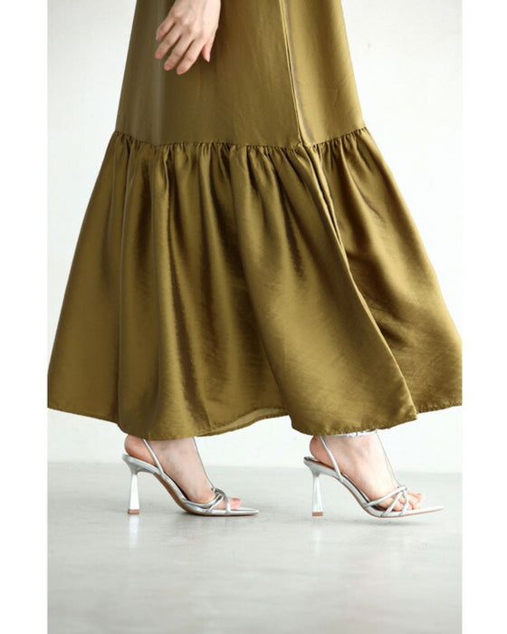 上品な雰囲気を演出してくれる光沢感のある素材が女性らしさを引き立ててくれる魅力的な一枚です。