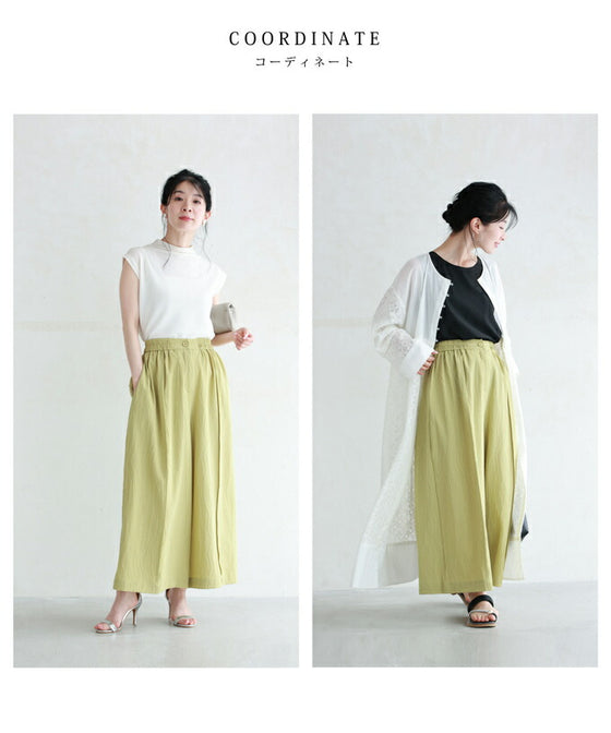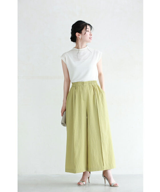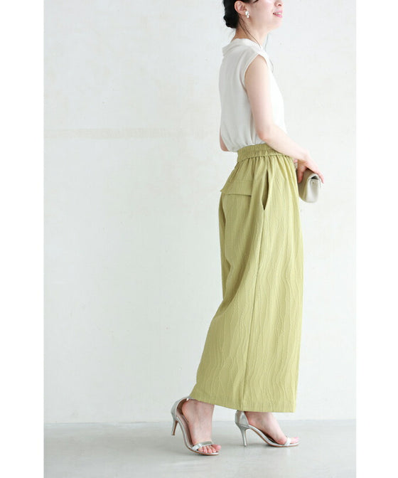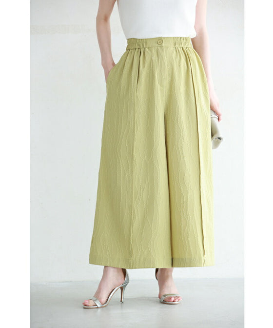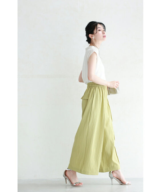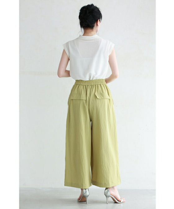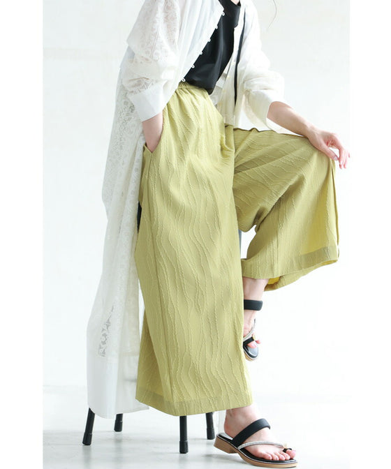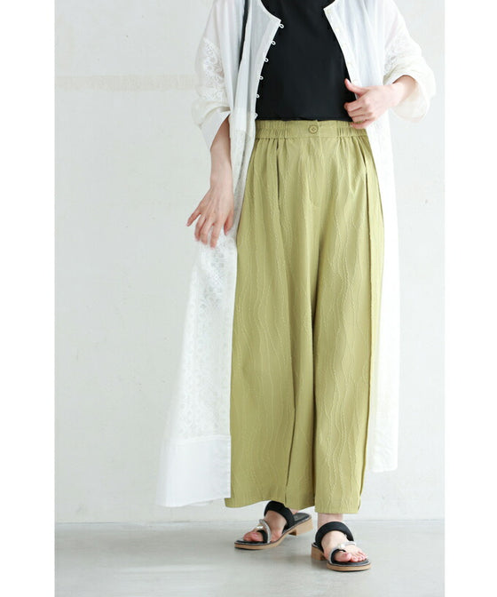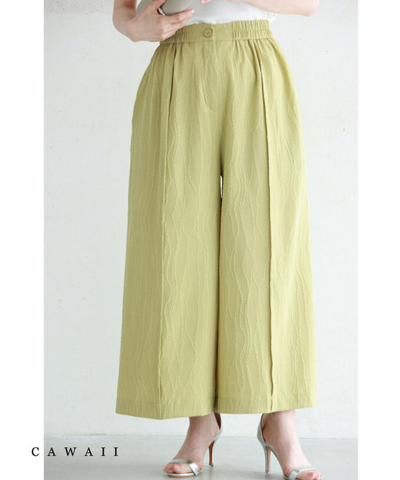 浮かぶなみなみラインの爽やかカラーワイドパンツ