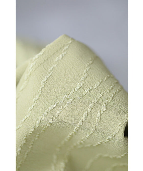 生地表面に波のような線が浮かぶことで、立体感と奥行きを持つデザインが独特です。手で触れたときに感じる独特の感触があり、触覚的にも魅力的。