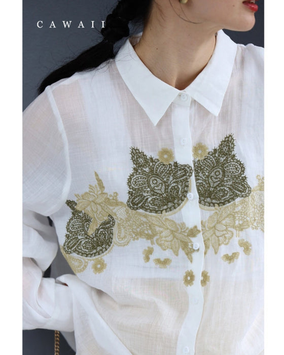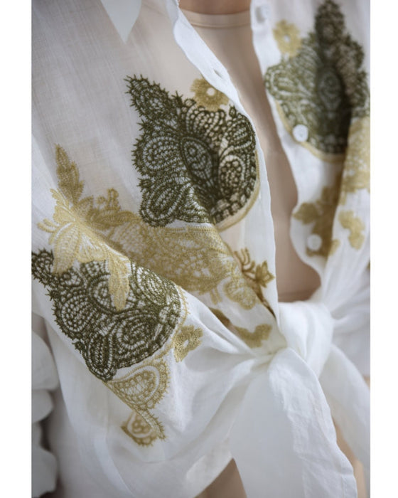 落ち着いた印象の2色のレースがシックでエレガントです。コーデのアクセントになって目を引きます。