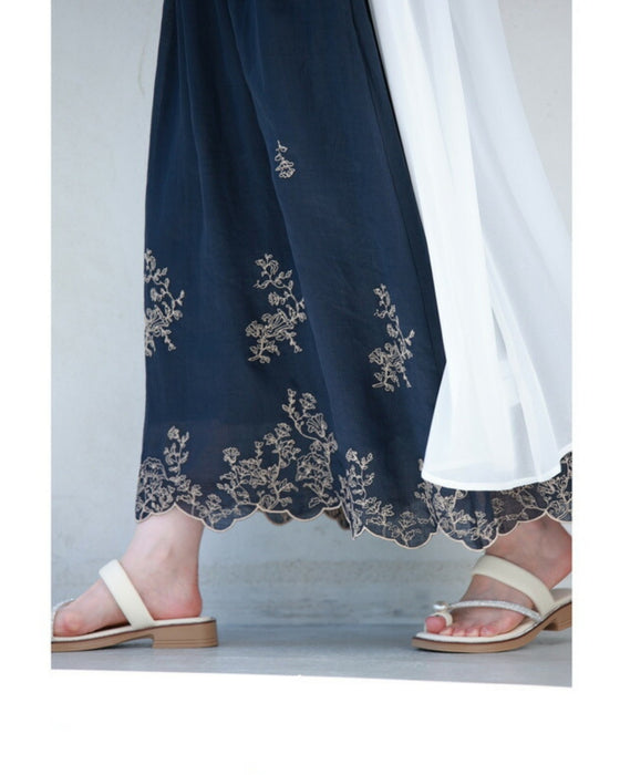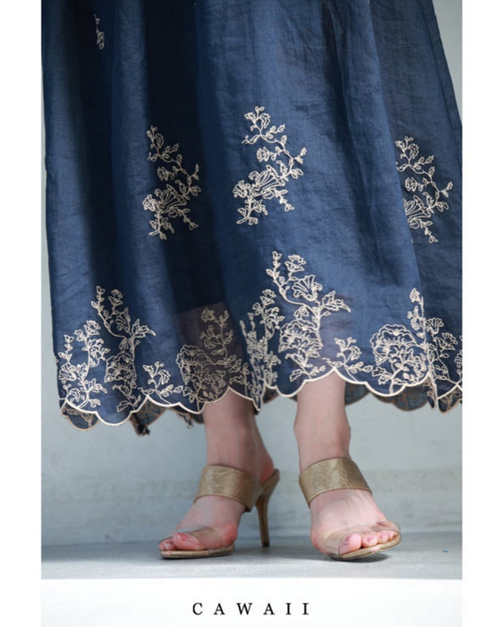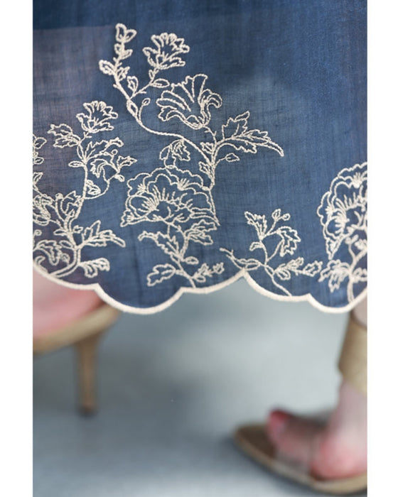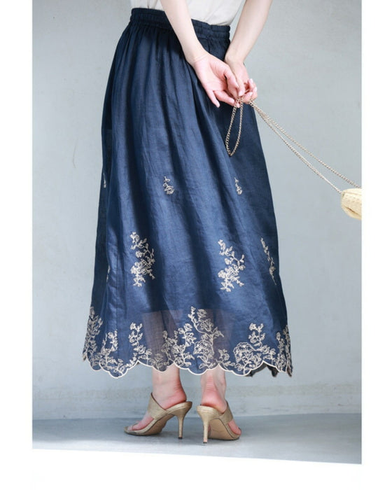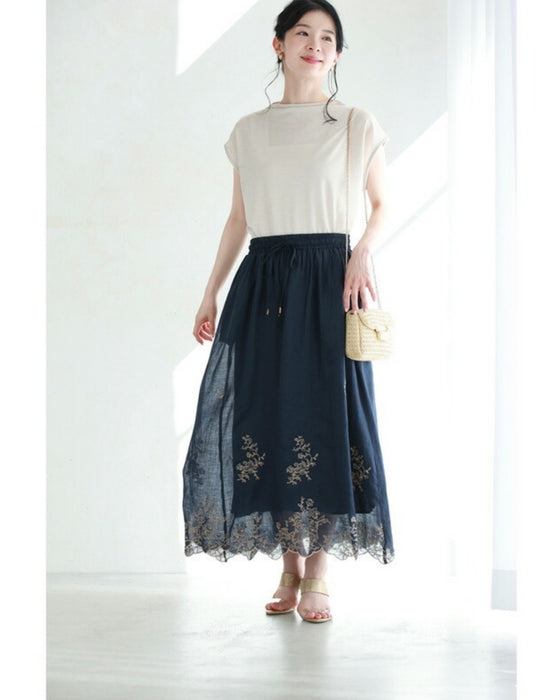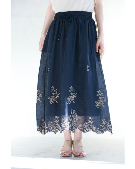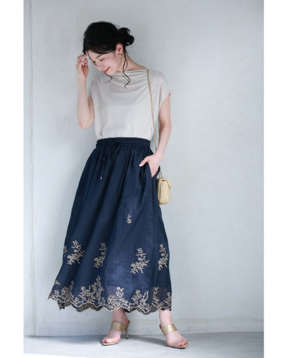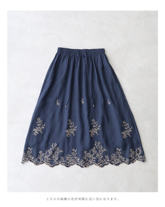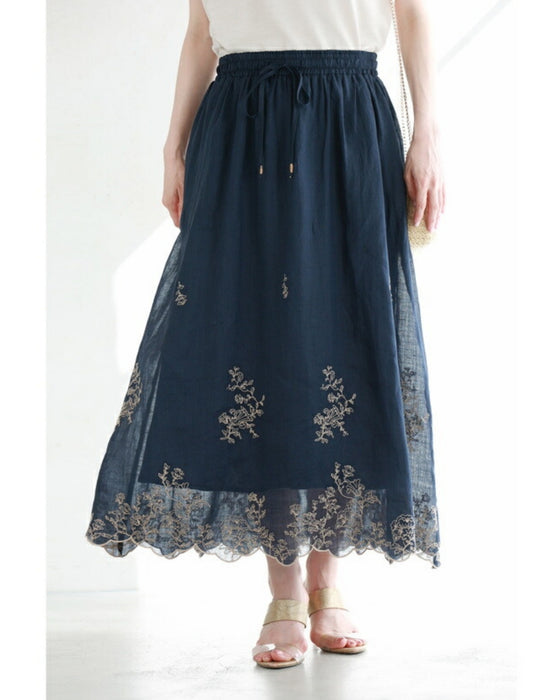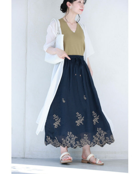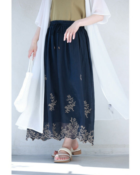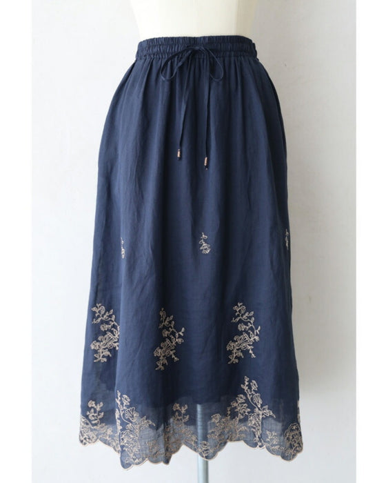 ふんわり風舞い込む涼しさの刺繍ミディアムスカート
