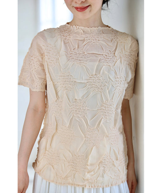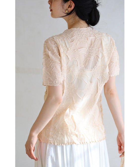 浮かび上がる紫陽花のシアーベールカットソートップス