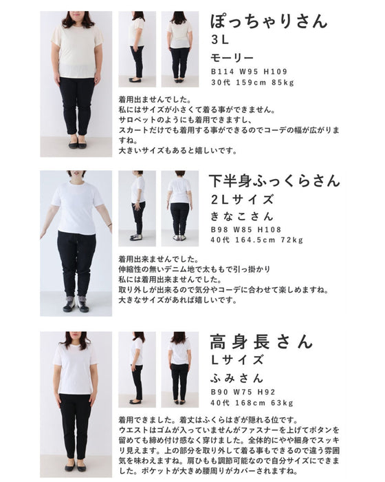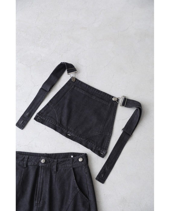 上の部分を取り外して着る事もできるのでサロペットでもスカートだけでも違う雰囲気を味わう事ができます。