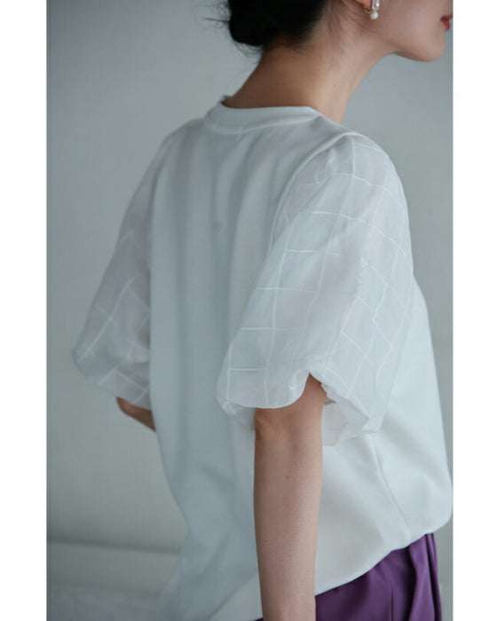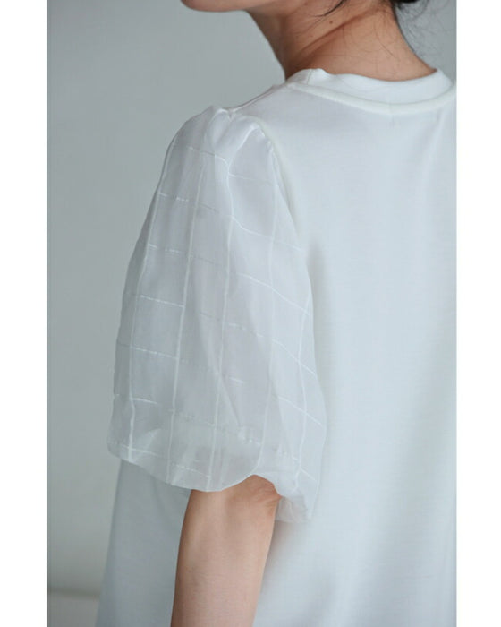 ■チュール素材のパフスリーブで二の腕ふんわりカバー