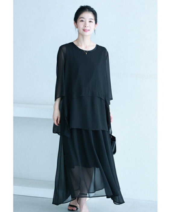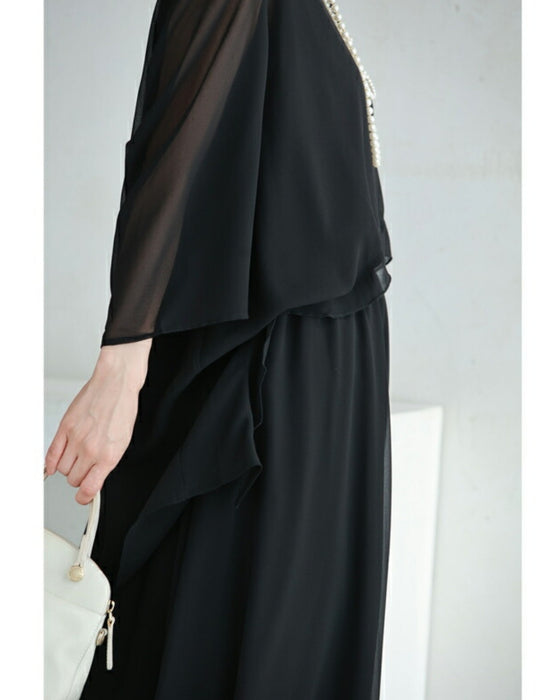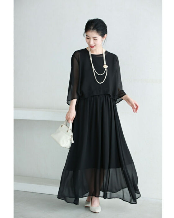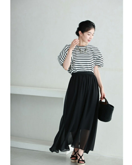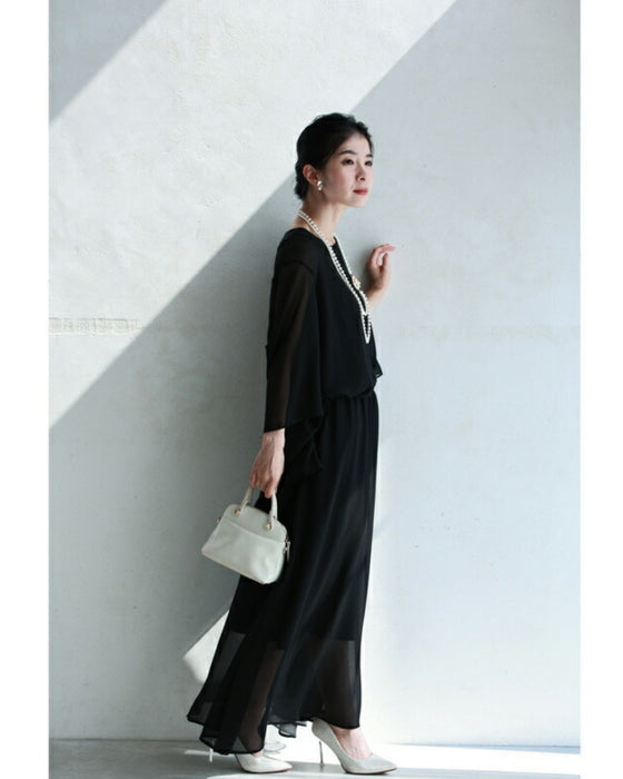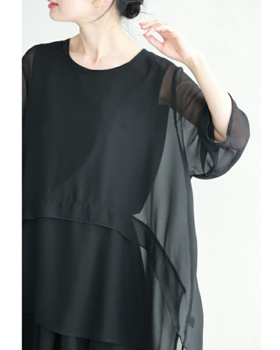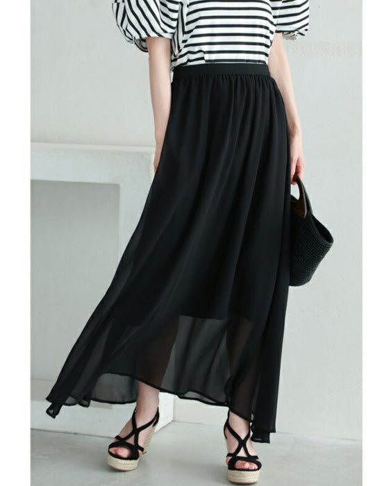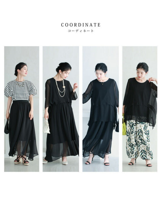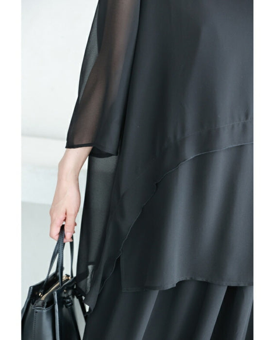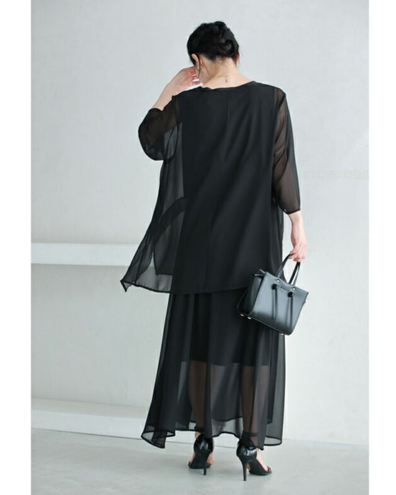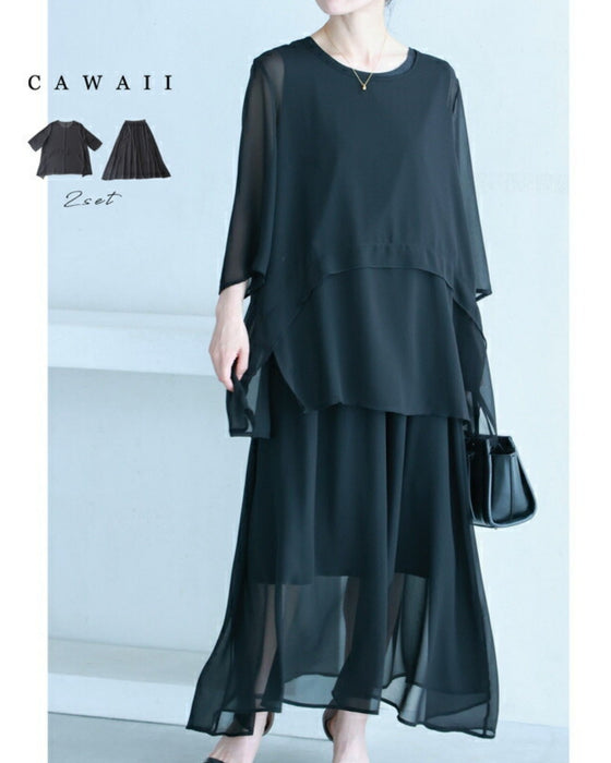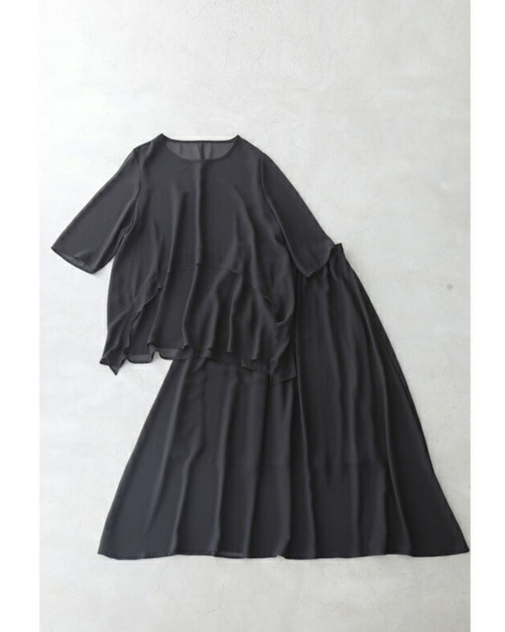 美しく揺らめく涼やかシアーブラックのブラウスとスカート【set】