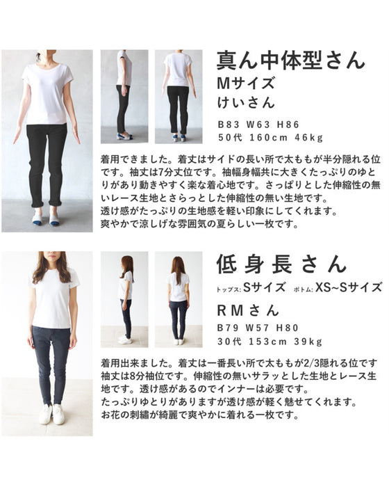 ■花刺繍をあしらったプラスワントップス