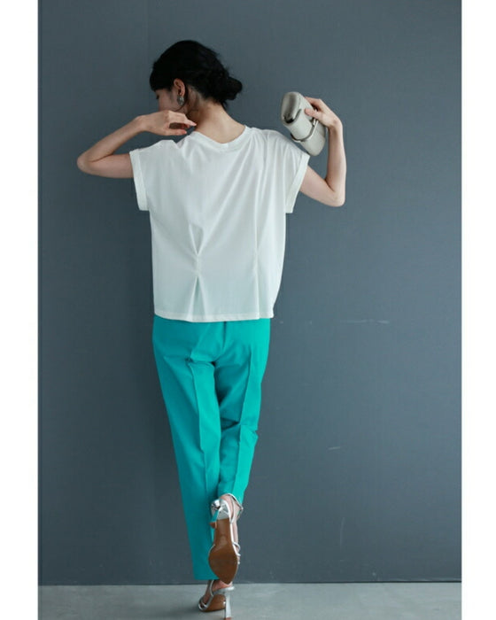 サラッとした肌触りのTシャツ素材を使用しており、着心地がとても快適です。軽やかな生地感で、暑い季節にもさらっと着用できるのが魅力です。
