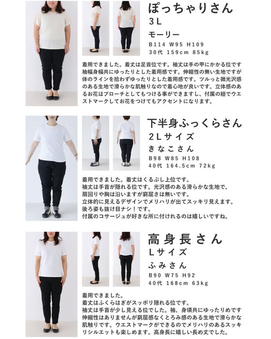 体のラインを拾わないため、どんな体型の方にもおすすめです。リラックスした着心地で、一日中快適に過ごせます。気になるウエストやヒップを自然にカバーしてくれるので、体型を気にせずお洒落を楽しめます。シンプルなデザインは、アクセサリーやシューズでさまざまなコーディネートが可能で、カジュアルな日常使いから、ちょっとしたお出かけまで、多用途に活躍するアイテムです。