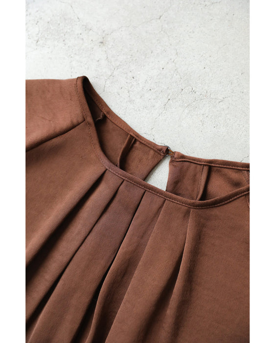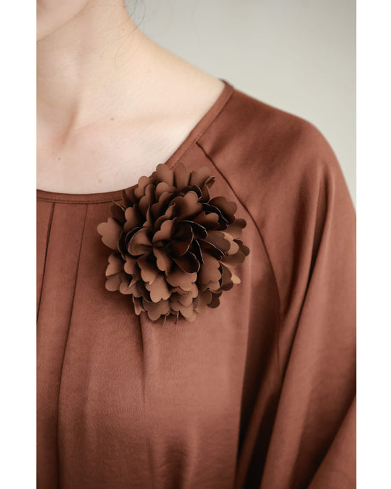 シーンに合わせてスタイルを変えられるのが魅力です。華やかさを加えたいときにはコサージュを付け、シンプルに着たいときには外してと、アレンジの幅が広がります。また、コサージュ自体もブローチのように他のアイテムに付け替えられるため、ワンピースだけでなく普段のコーディネートにも使えます。