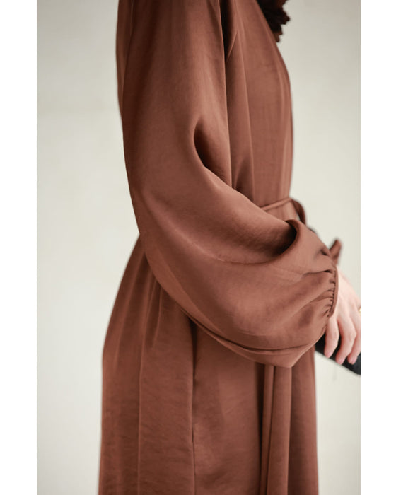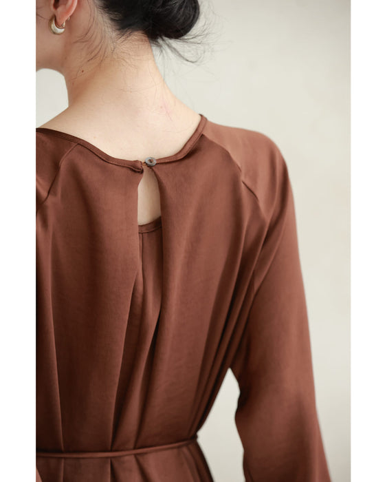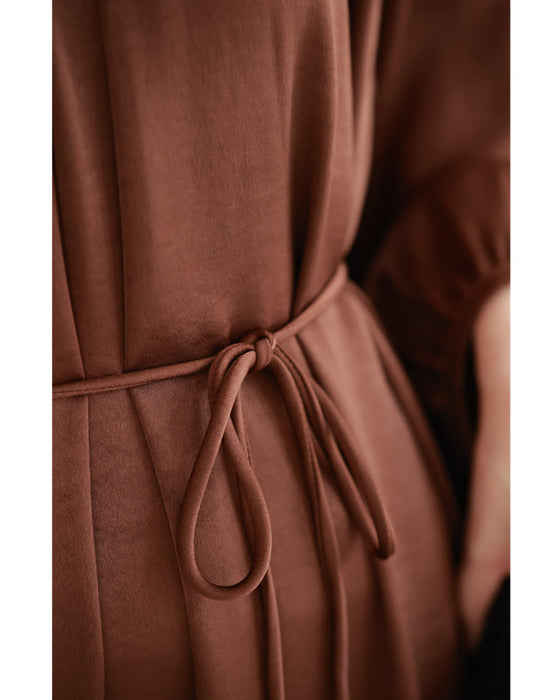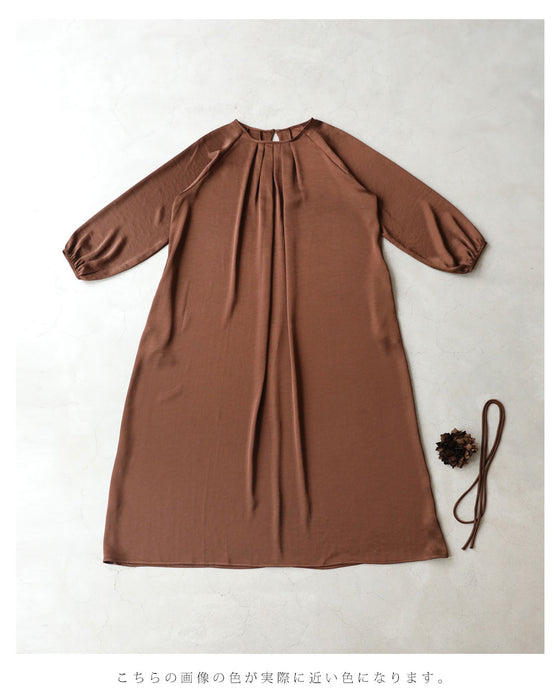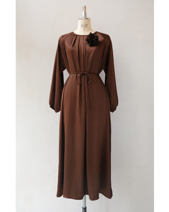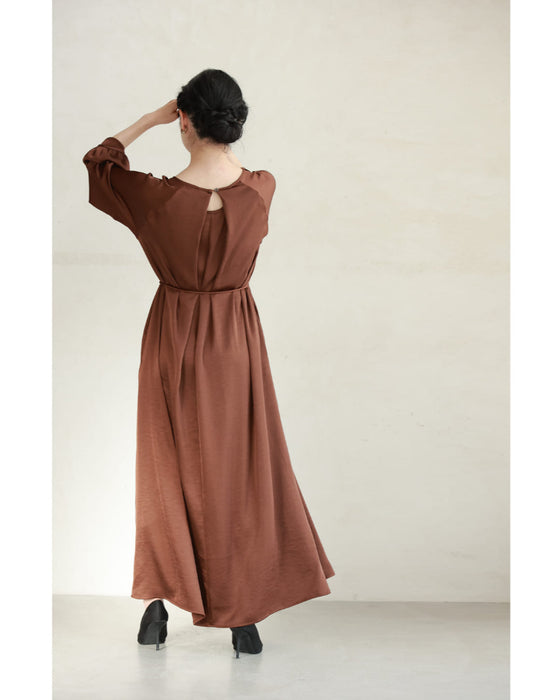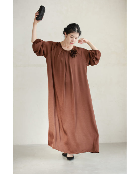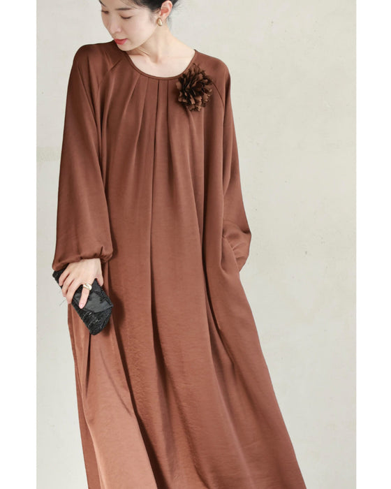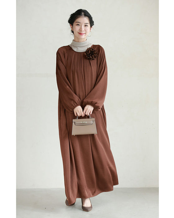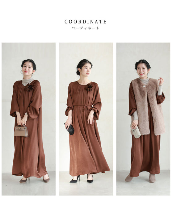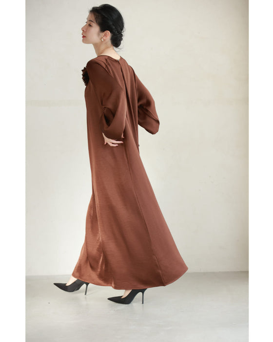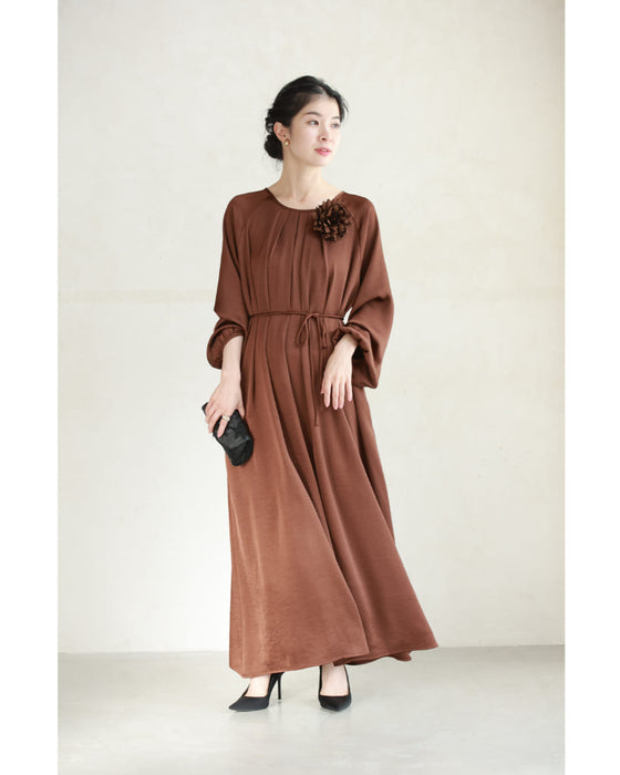 とろんと揺れる艶めきロングワンピース(紐ベルト・コサージュ付き)