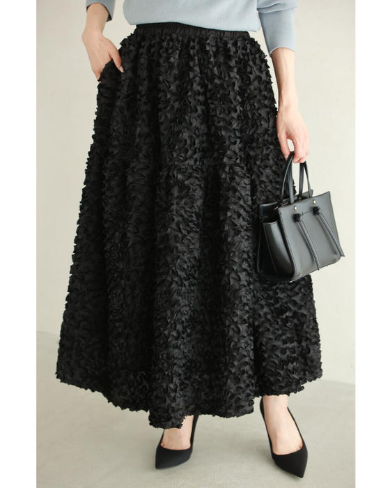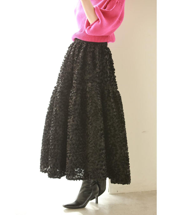 見た目にも可愛らしく、エレガントでふんわりシルエットが際立ちます。無地ののっぺり感が無く穿くだけで様になる。
