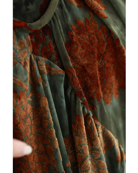 秋の訪れを感じさせるフロッキー加工が施されたこの美しく、心を惹きつける魅力が満載です。色合いは秋の深まりを感じさせる豊かなトーンで、どんなコーディネートにも自然に溶け込みます。