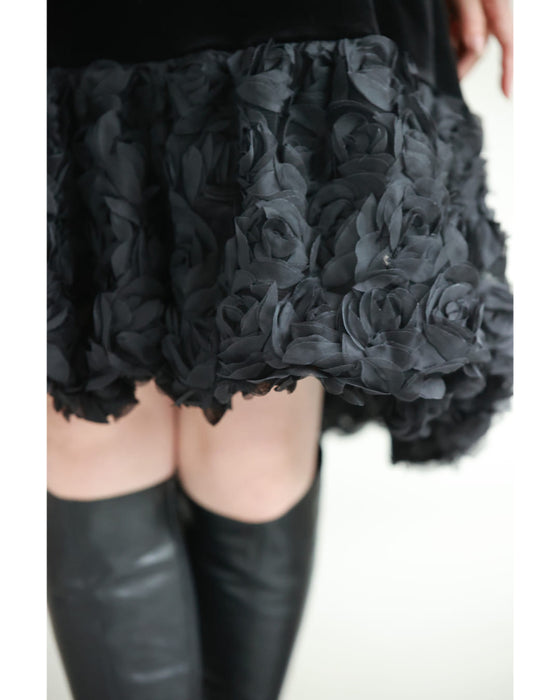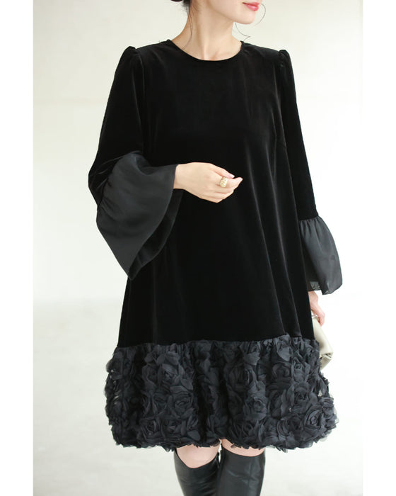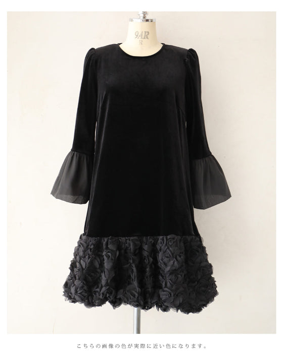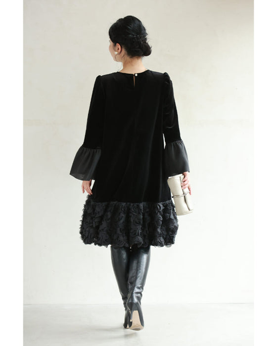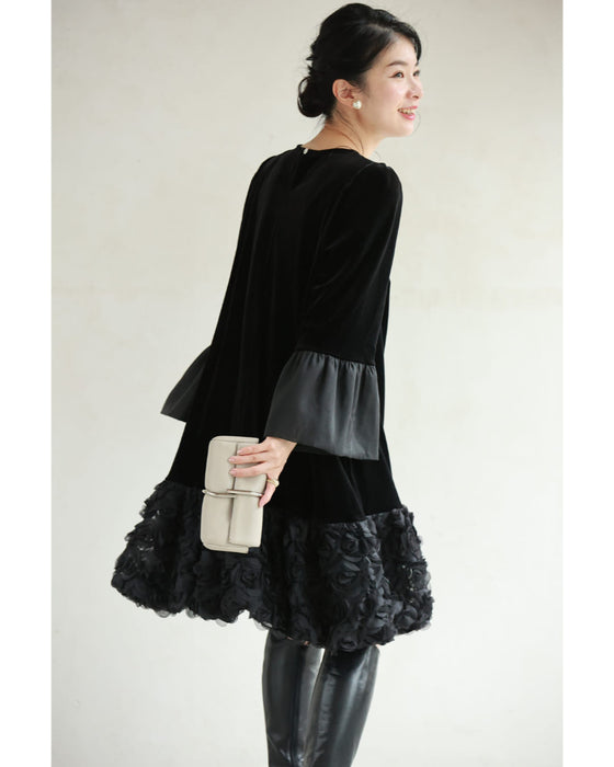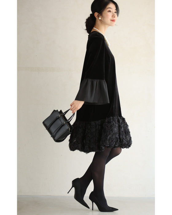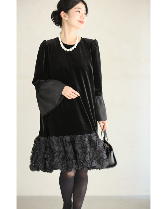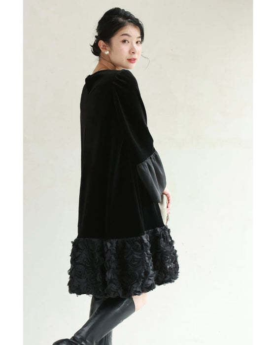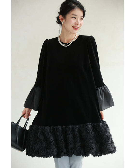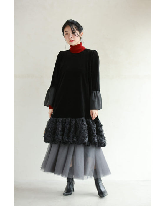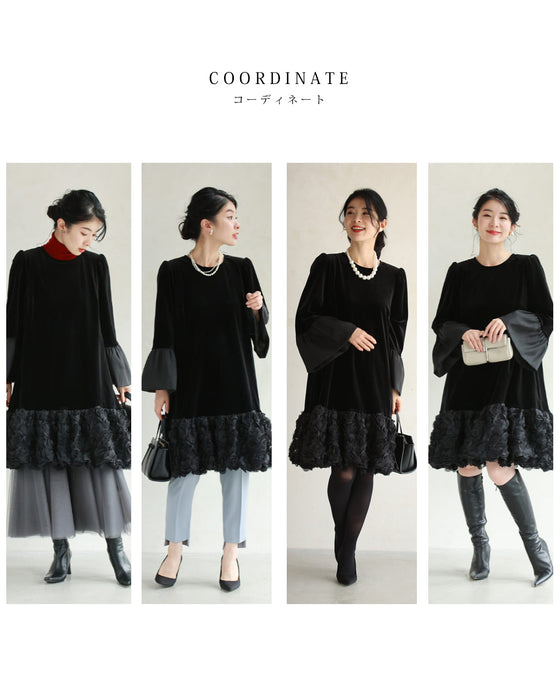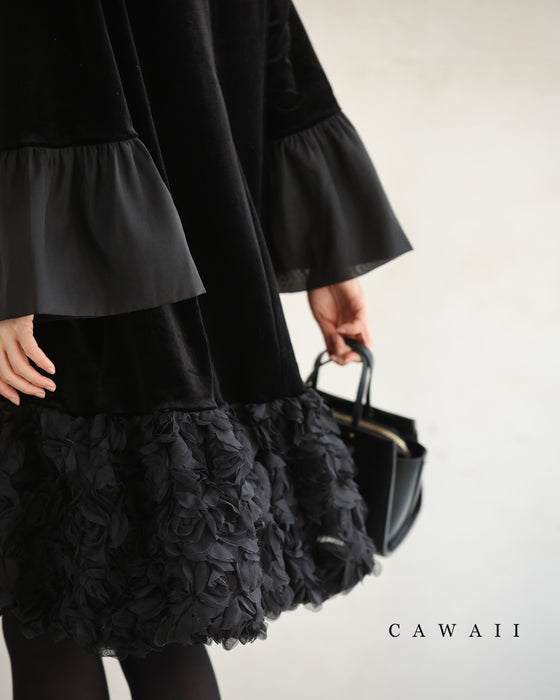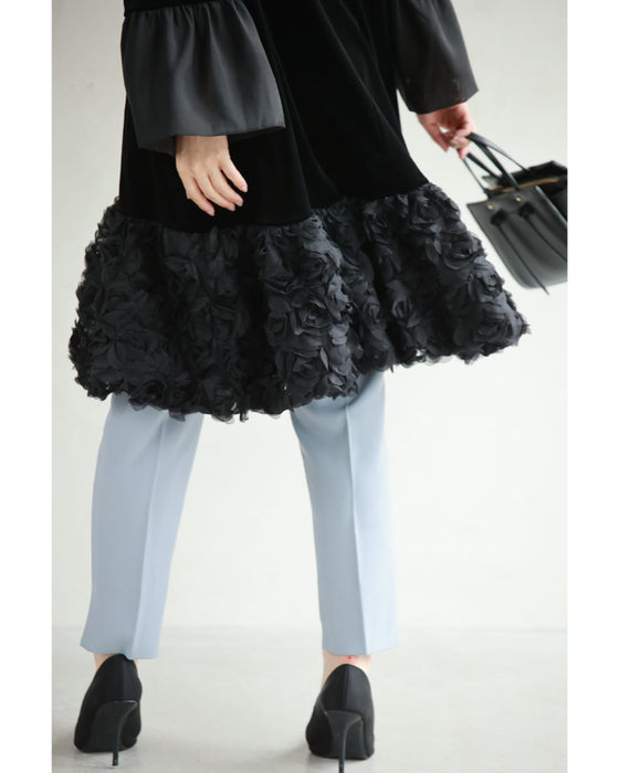 特に注目したいのは、裾に施された立体的な黒花のデザインです。この美しい花々が、他のアイテムにはない独自の魅力を引き出し、見る人の目を惹きつけます。
