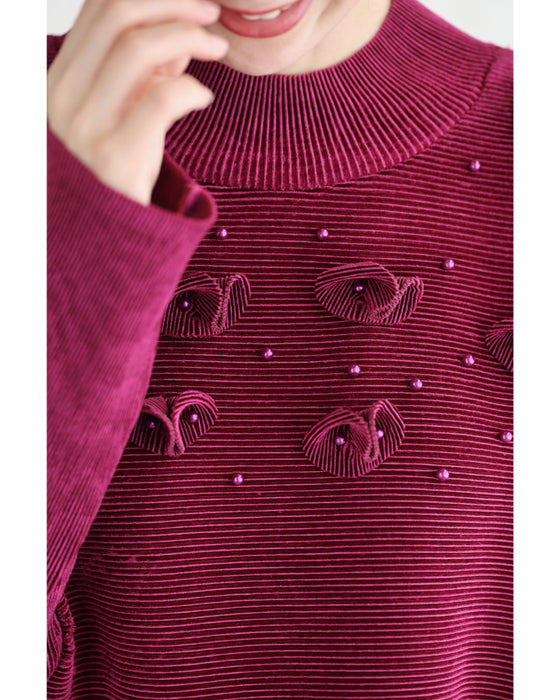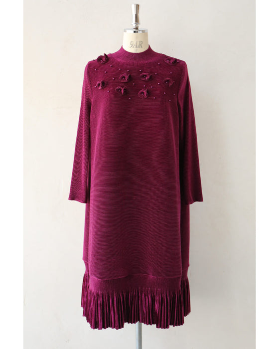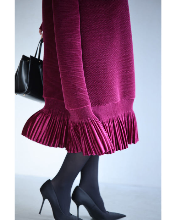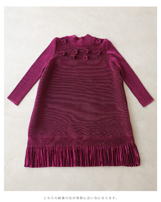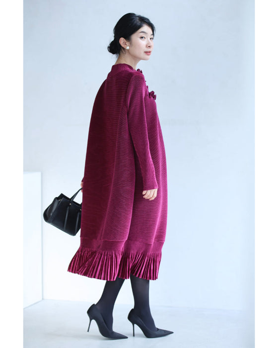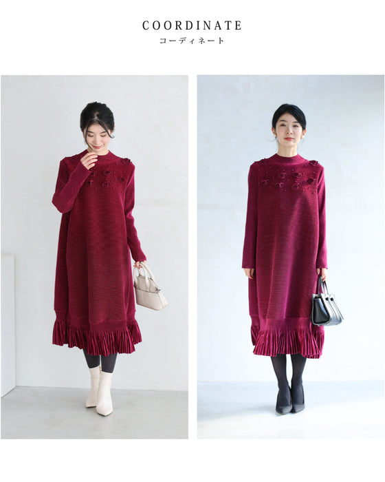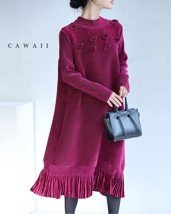 ぷっくり立体花咲くベロア調プリーツミディアムワンピース