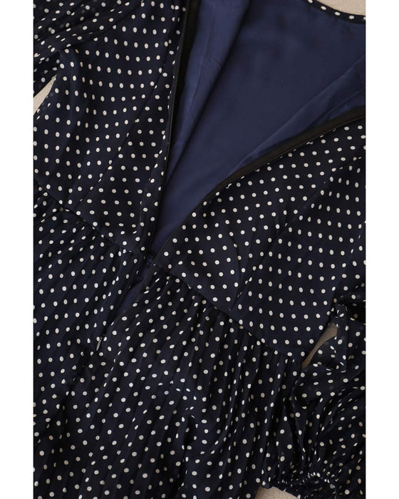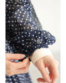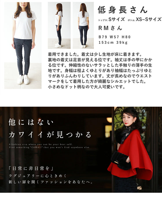 小さなドット柄が施された生地が、クラシカルな魅力を引き立てます。 シンプルなデザインながらもベルトがセットで付属しており、ウエストマークをすることでメリハリのあるシルエットを演出します。