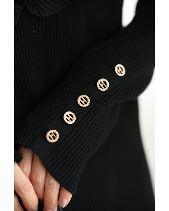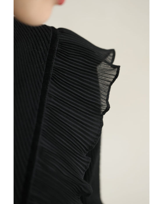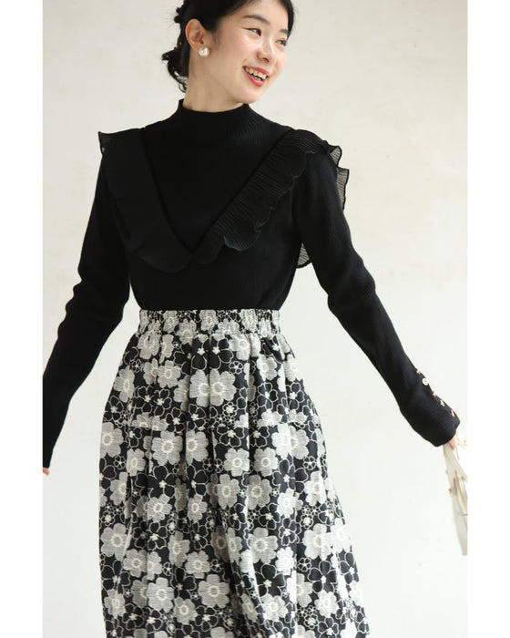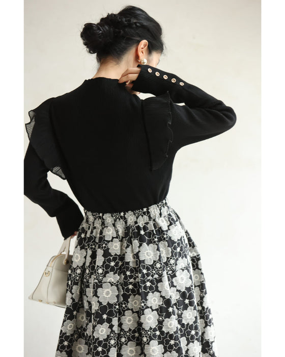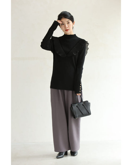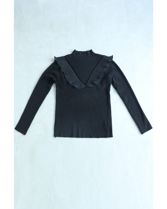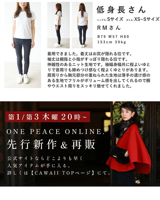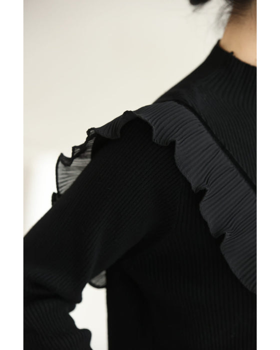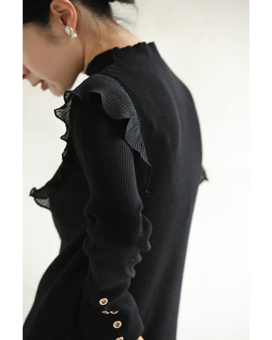 可愛らしさを添えたプリーツフリルのニットカットソートップス