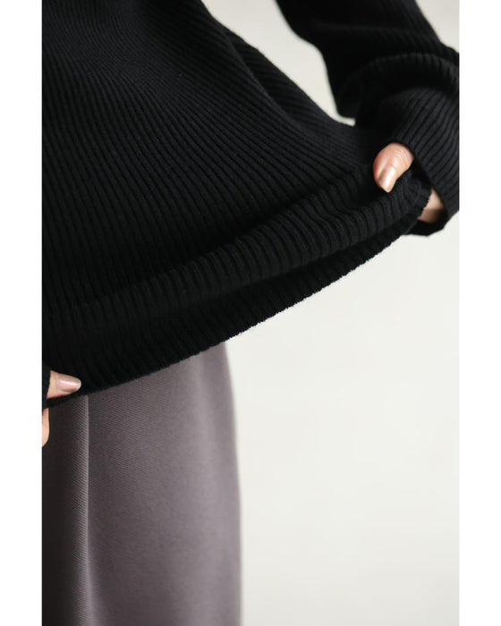 線の細いリブが体のラインに程よくフィットし、美しいシルエットを演出。カジュアルにもエレガントにも着こなせます。肌触りが良く、体に程よく馴染むため、長時間の着用でも快適です。