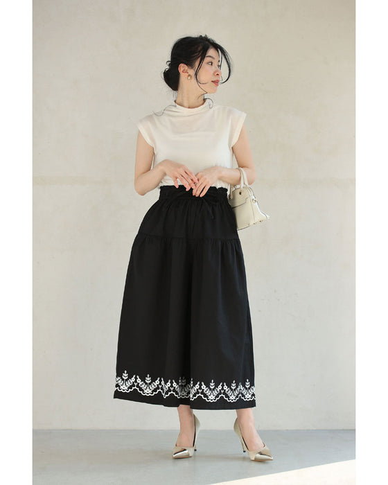 ウエスト部分はゴム仕様になっているため、締め付け感がなく快適に着用できるのもポイント。カジュアルなコーディネートにはもちろん、少しきれいめなトップスを合わせることで大人っぽいスタイリングも可能です。
