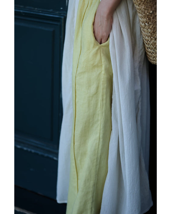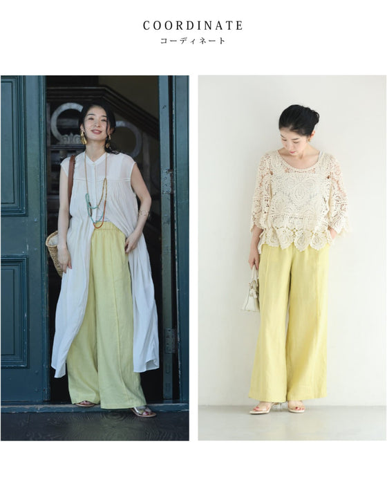 大人カジュアルに欠かせない、リネンの質感。動くたびに揺れる軽やかさが、上品な抜け感を演出します。