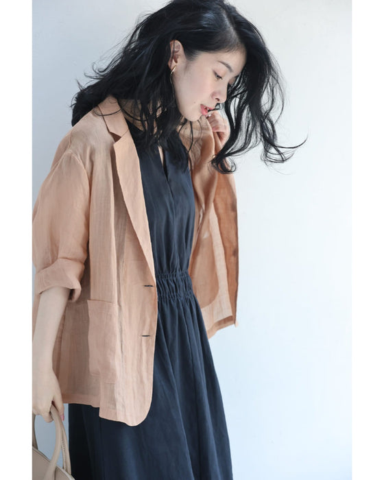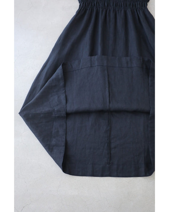 素材には、通気性に優れた天然リネンを使用。汗ばむ季節もさらりとした肌ざわりで快適に過ごせるのが魅力です。しっかりとした生地感ながらも、動きに合わせて自然に揺れるシルエットが、軽やかで女性らしい雰囲気を演出します。
