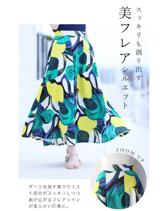 他にはないモダン柄スカートが大人の華やかさを演出してくれます。華やかで明るいカラーに濃い目の色を使うことで大人っぽさがぐっと増したシックな一枚に◎ただ明るい色を使った映えスカートではなく、この大人っぽさが魅力的です。