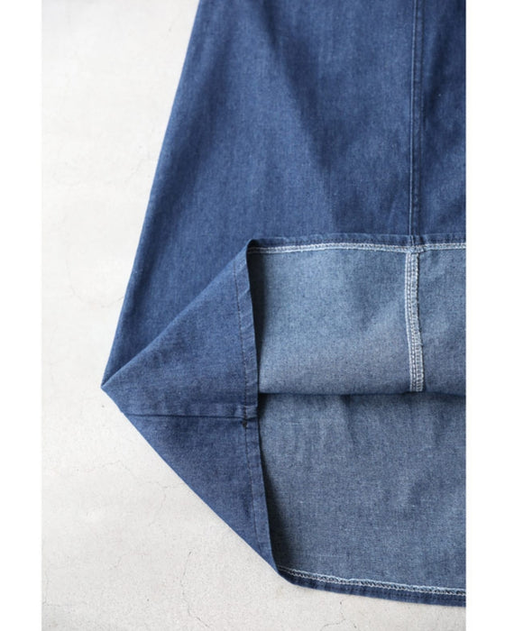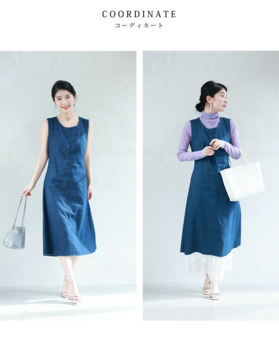 バックオープンのデニム調ミディアムワンピース