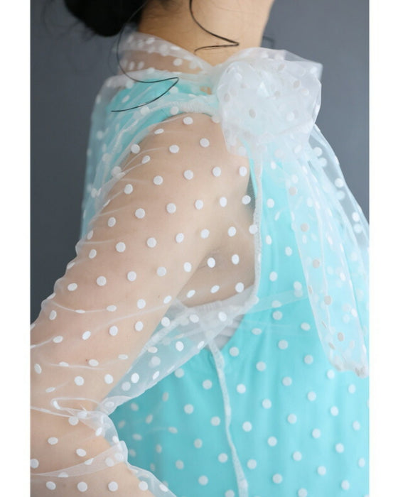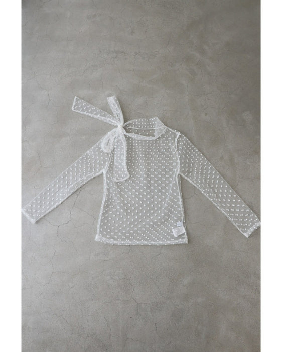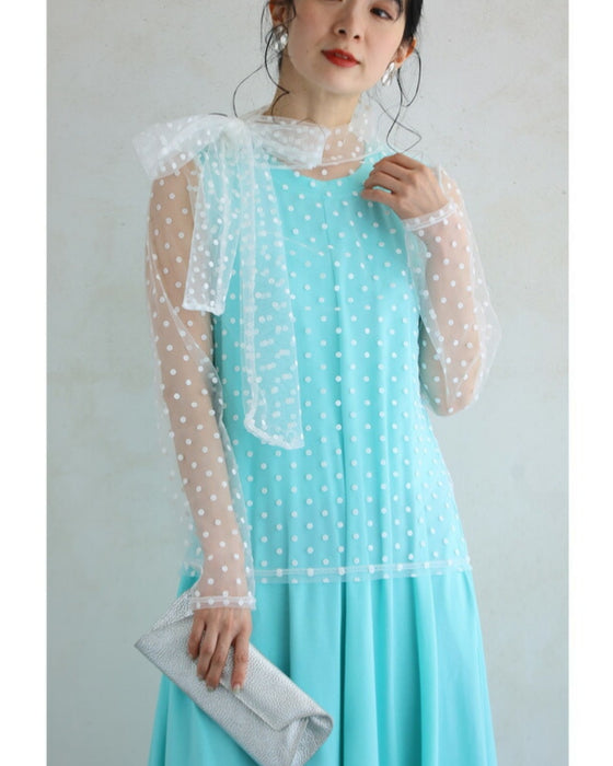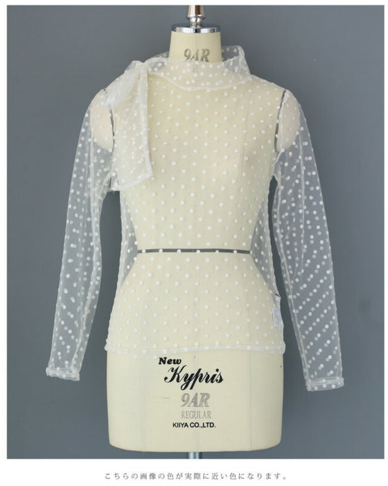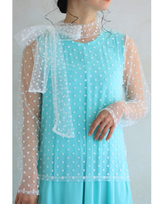 リボンネックのドットチュールインナートップス