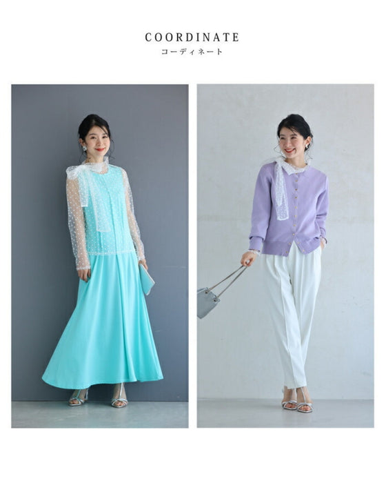 チュールの透け感が軽やかな印象を与えてくれて涼しげですし、チュールを一枚通すことにより素肌のシミやシワなどをカバーしてくれます。