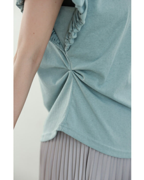 立体感を演出するギャザー袖が特徴的。シンプルながらもユニークなデザインで、さりげなくおしゃれを楽しむことができます。