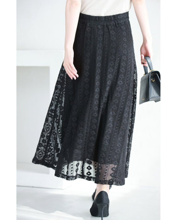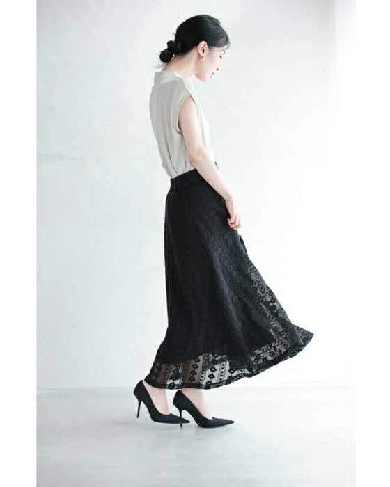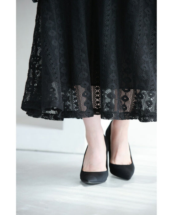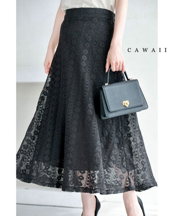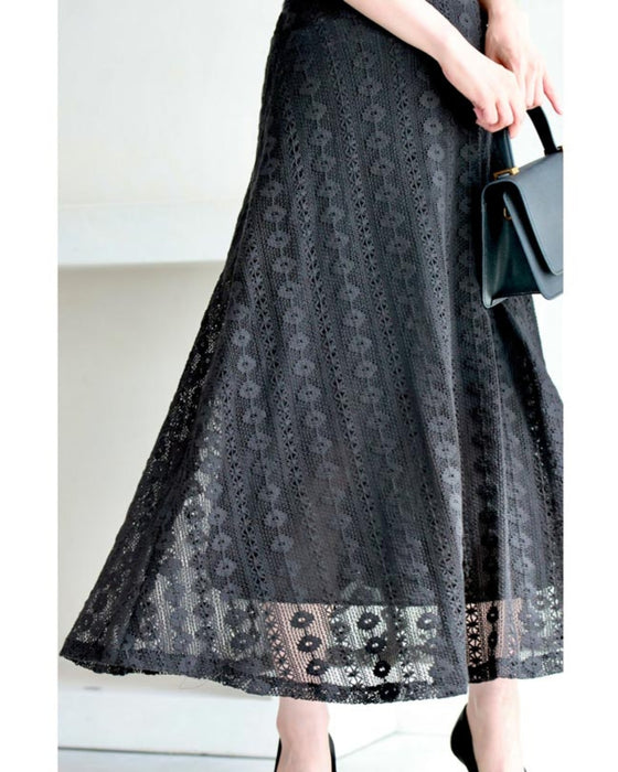 流れるように小花レース揺らめくフレアスカート