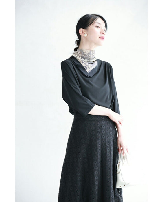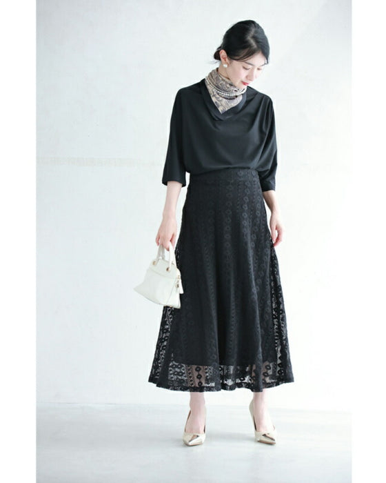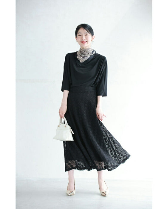 割と丈夫な生地感で柔らかいけどしっかりとした手触り。レース地なので軽やかで重たく見えないのも特徴的。肌に優しく、長時間着ても快適です。デザインと柔らかな質感が相まって、女性らしい優雅で上品な雰囲気を演出します。