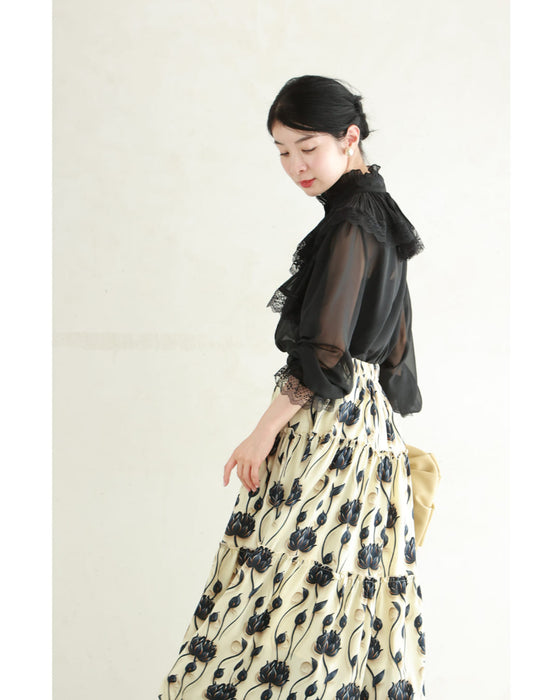 特に袖がふんわりとしていてフリルの女性らしいデザインと相まってエレガントで華やかな演出効果も期待できます。