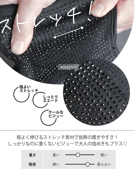 ■程よく伸びるストレッチ素材でフィット感があり抜群の履きやすさ!敷き詰められたビジューもしっかりなのに重くありません。内側全面裏起毛で保温性も◎