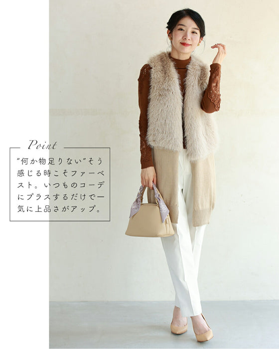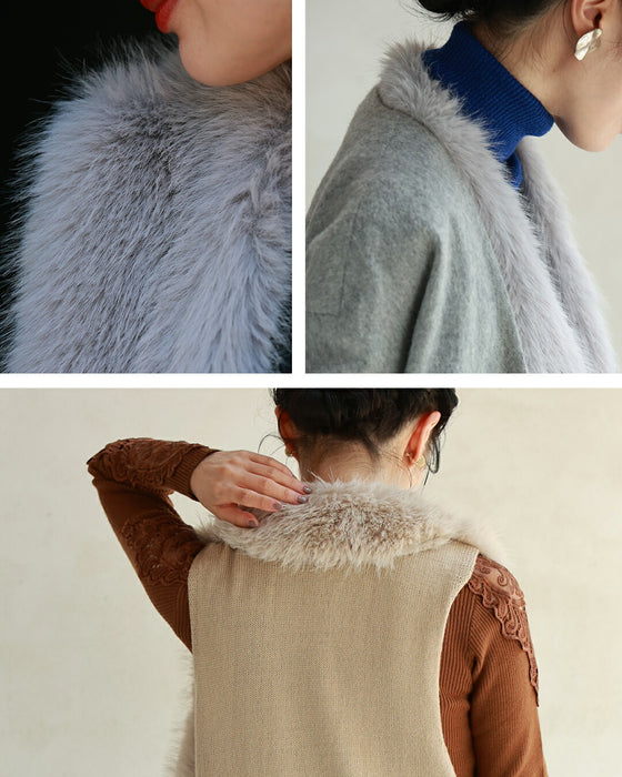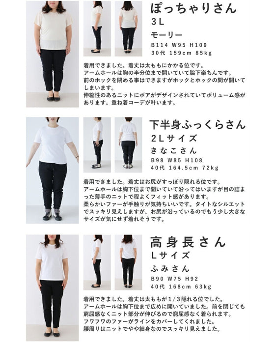 静電気は化学繊維に限らず、すべての素材で発生し、こちらの商品に関しては、衣服の組み合わせによってはファーが付きやすくなっております。ポリエステルや綿素材の商品と組み合わせると、静電気は起こりにくいです。静電気防止スプレーや柔軟剤、加湿器を使用すると、静電気は軽減します。ご了承の上、お買い求めくださいませ。