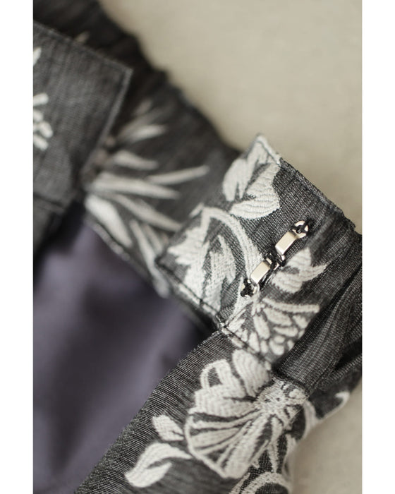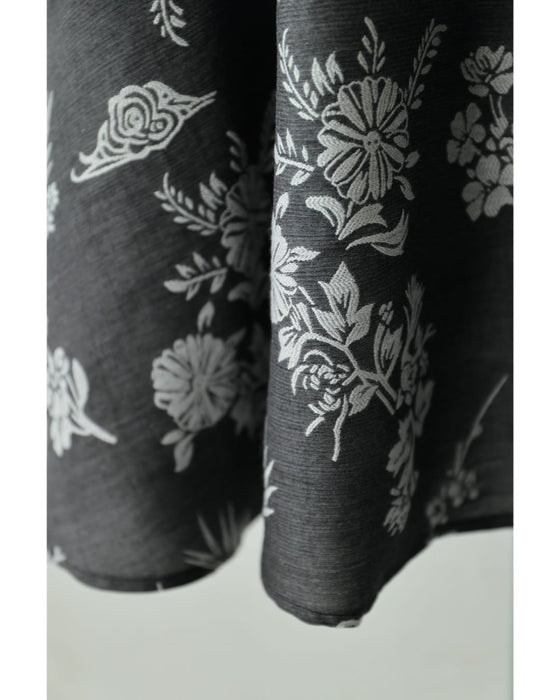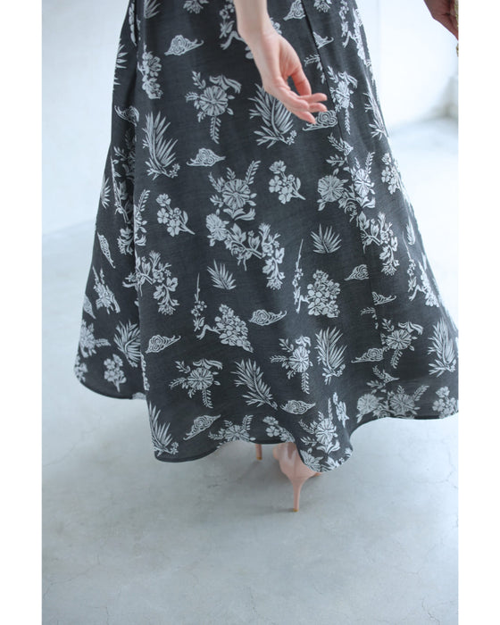 繊細な花々の刺繍が贅沢にあしらわれており、まるでアートのような佇まいで、大人の女性らしい落ち着きと気品を漂わせます。