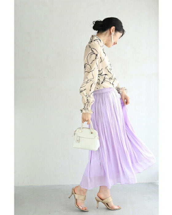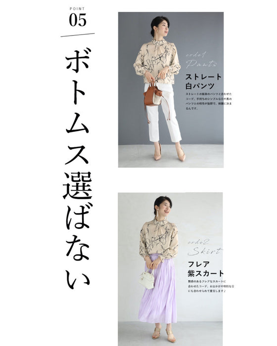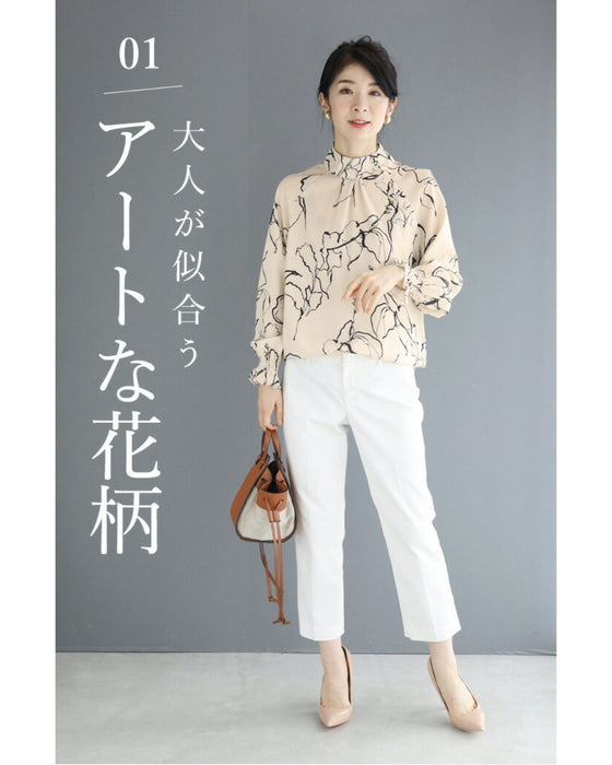 上品な柄ブラウスは、コーデに取り入れるだけで洗練された印象に。