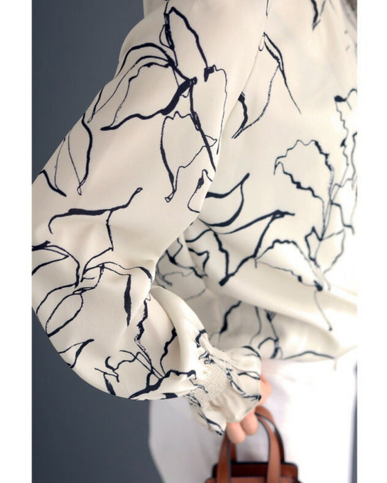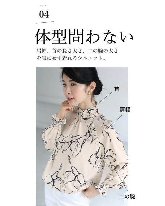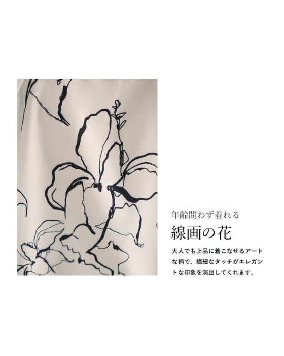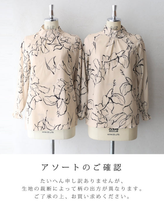 ■柔らかな線で描かれるエレガントな花模様 柔らかな線で描かれた花模様が上品なブラウスです。