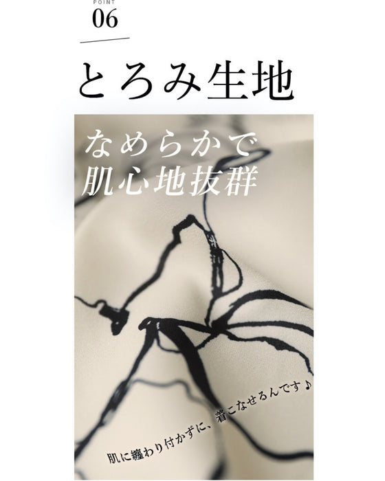 落ち感の美しいとろみ素材が女性らしいシルエットをつくります。艶のある生地でシンプルながら華やかな印象に。