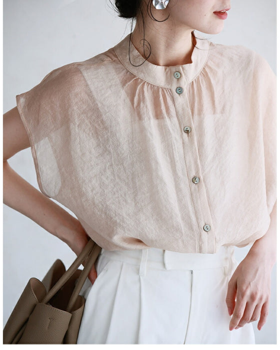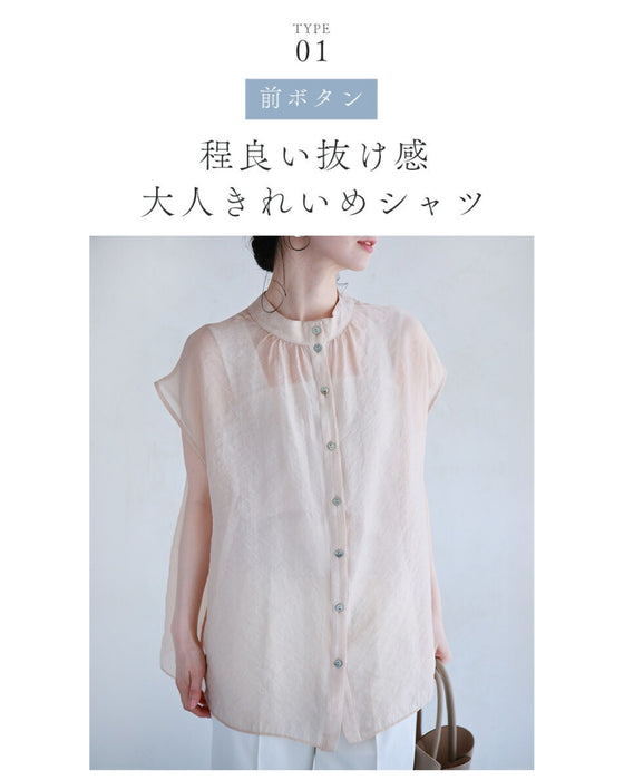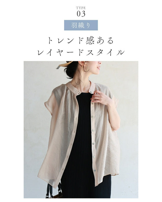 前ボタンにしても、後ろボタンにしても、羽織にしてもいい。ゆるっと感があるのにだらし無くない。襟なしで首周りもスッキリ。