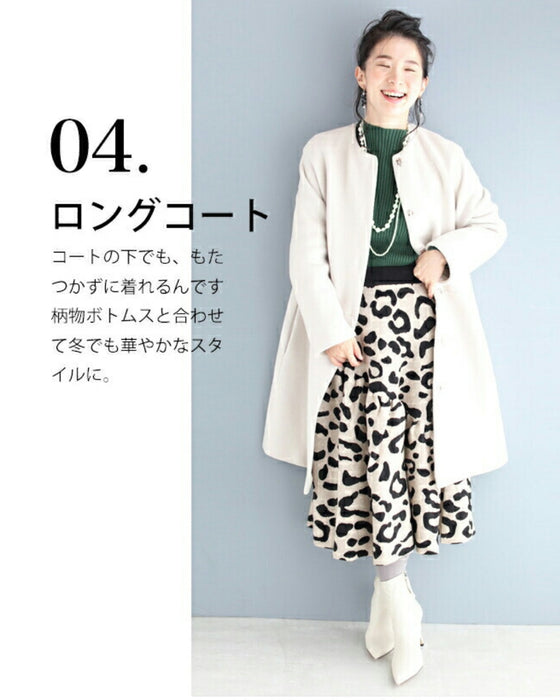 黄金比率の着丈が様々なお洋服に合わせられますのでコーデの幅をぐーんと広げます。