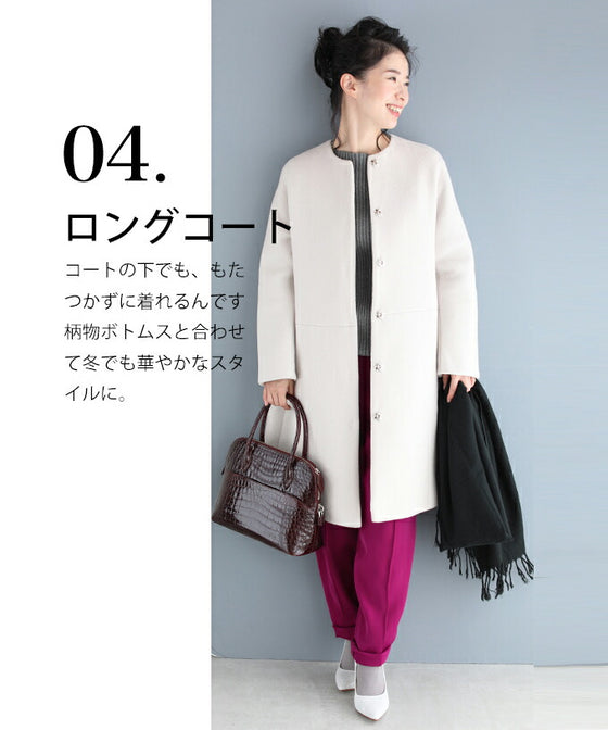 ・コートの下に着ても”もたつかない”滑らかな素材です。