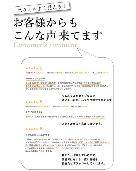 ・こだわり抜いたシルエットで「二の腕」「首」「肩幅」「ウエスト」全部着痩せして魅せます。