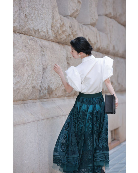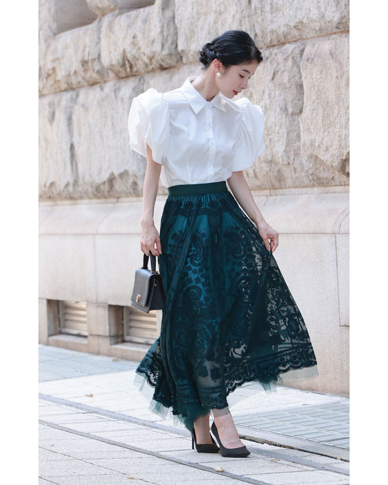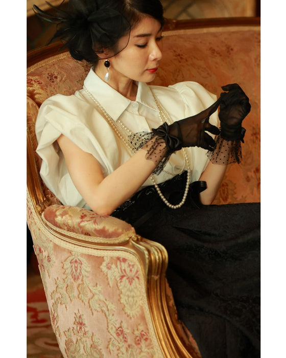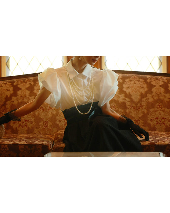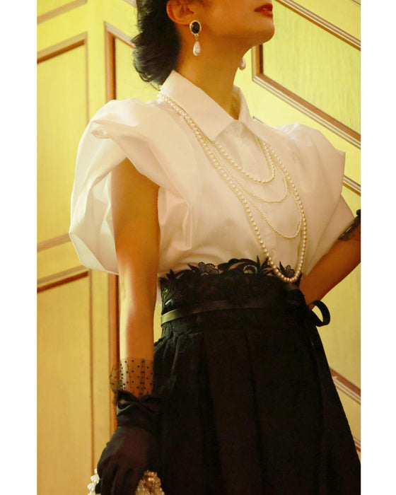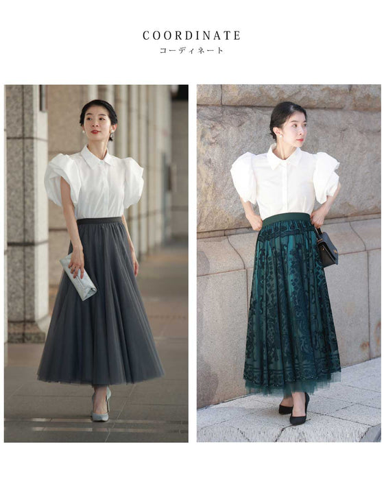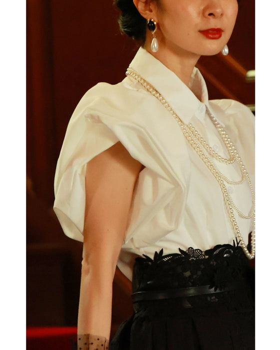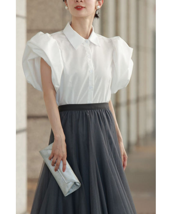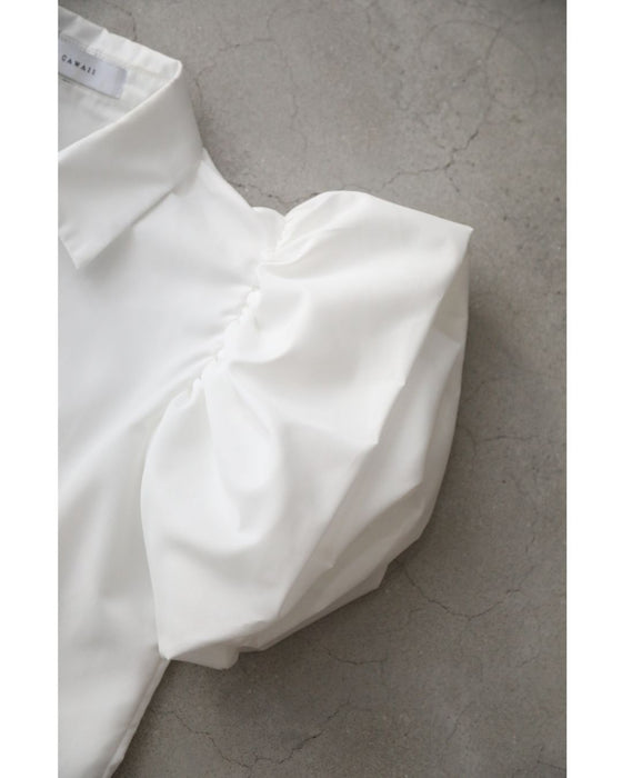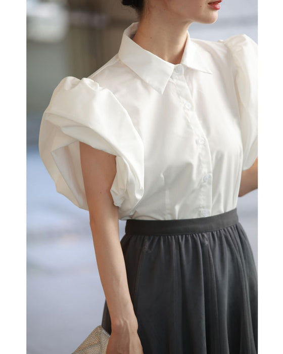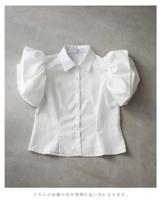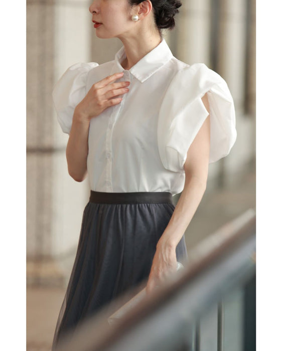ふっくら花びらパフスリーブブラウストップス