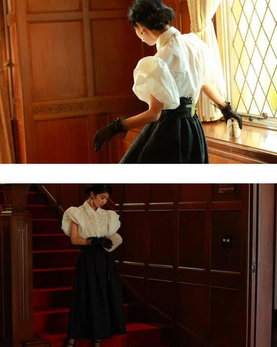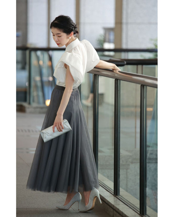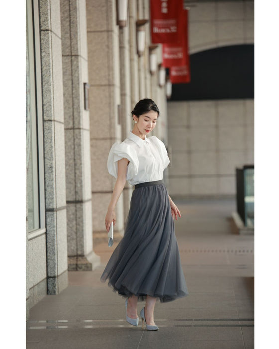 立体的な花びら袖が特徴で、他にはないユニークなシルエットが目を引きます。この華やかなスリーブは、どの角度から見ても美しい印象を与え、カジュアルなシーンでも特別感を演出します。
