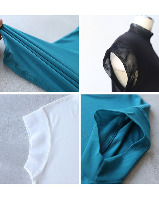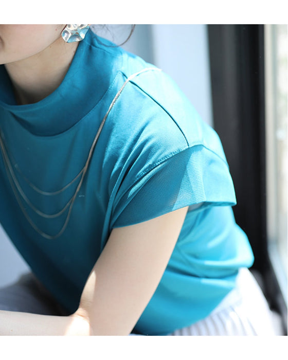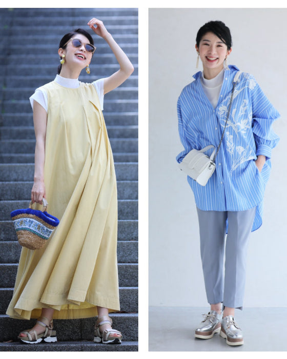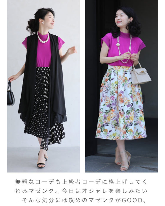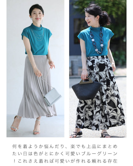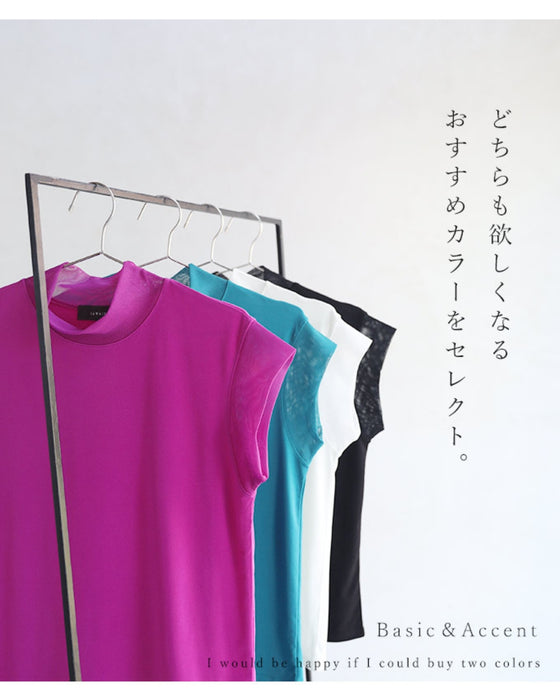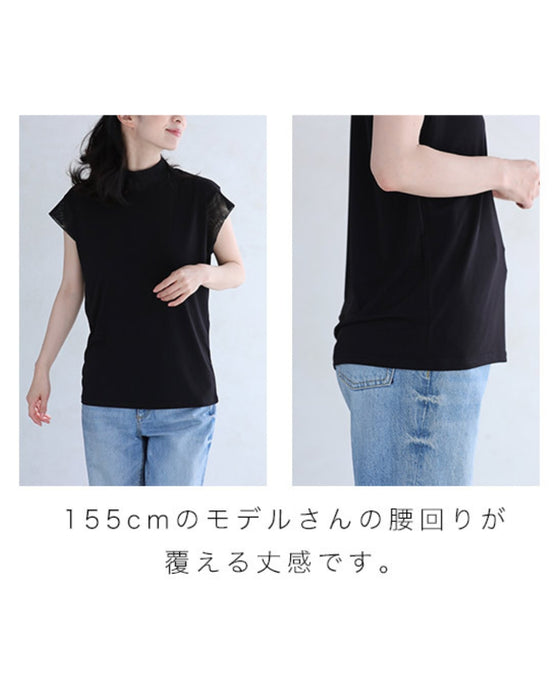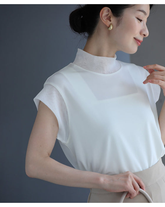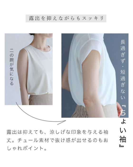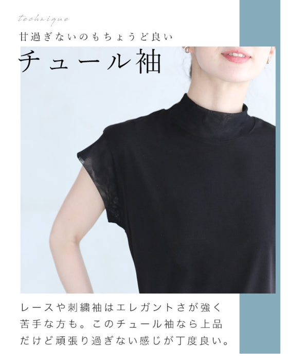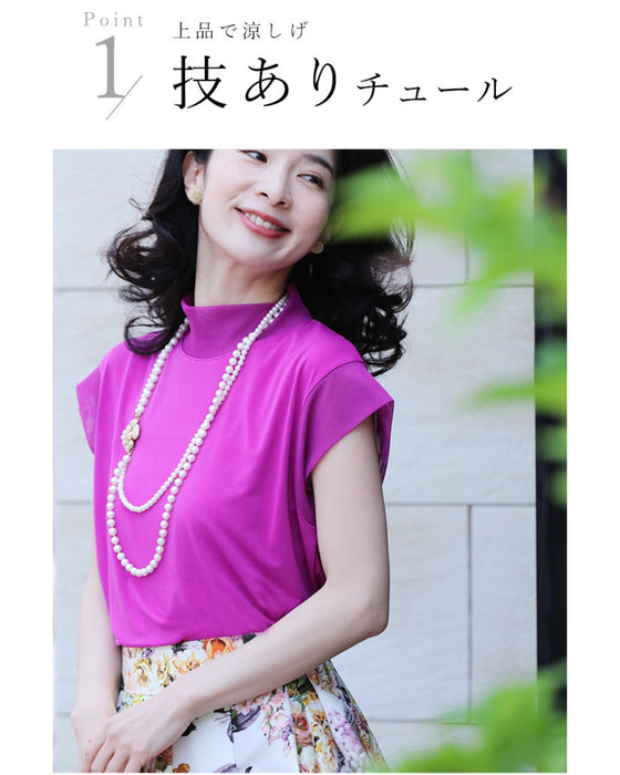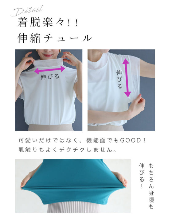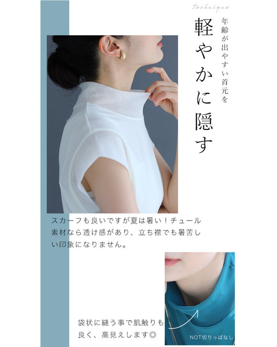 上品で涼しげな技ありチュールで年齢が出やすい首元を軽やかに隠してくれます♪レースや刺繍はエレガントさが強く苦手な人もチュールなら上品だけど頑張りすぎない感じが丁度いい◎