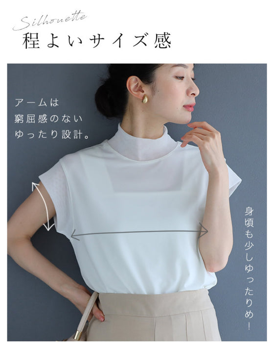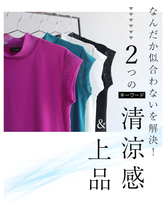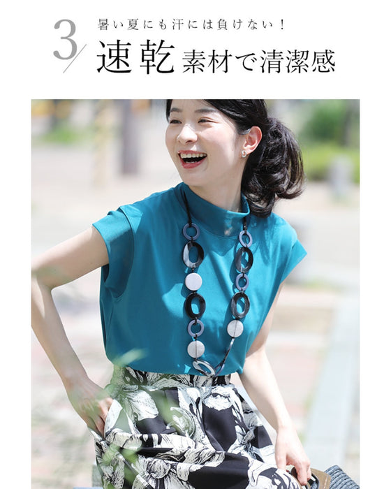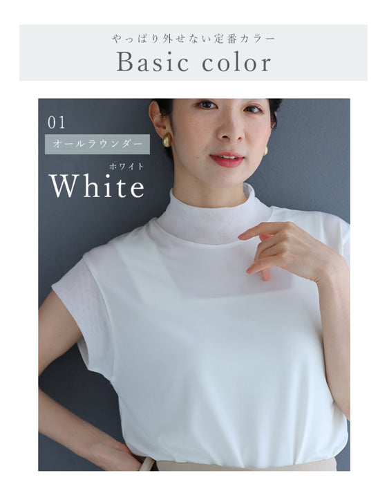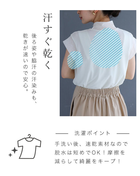 暑い夏にも汗にも負けない!速乾素材で清涼感があり、上品さを生み出す艶感のあるサラ艶素材でギラギラしすぎず絶妙に上品な艶感がお顔周りを明るい印象になる◎
