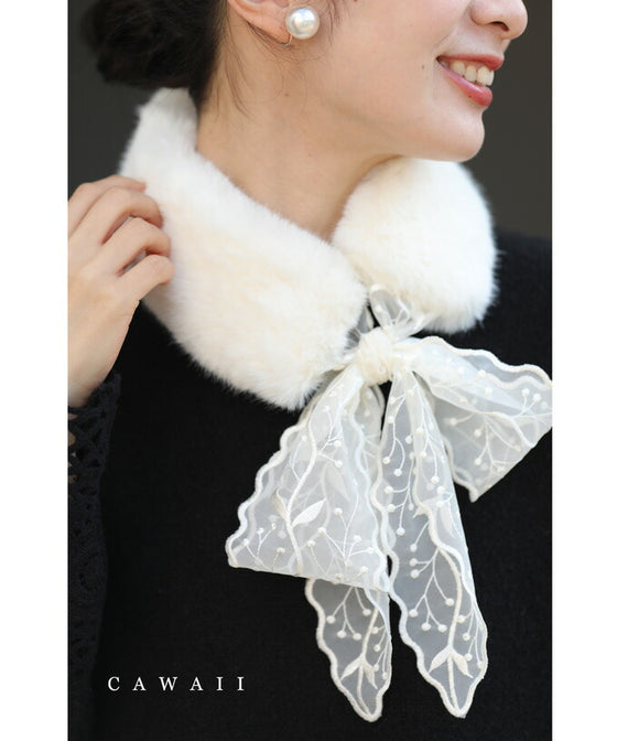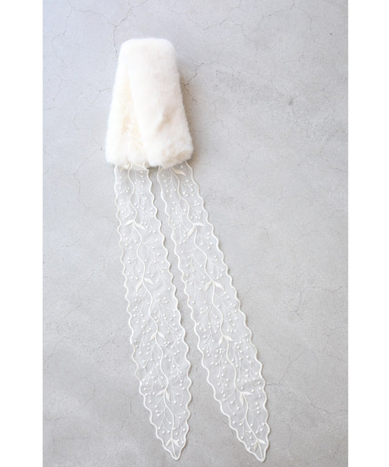 優美なレースリボンのフェイクファーティペット