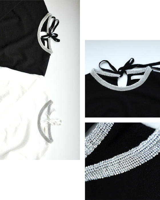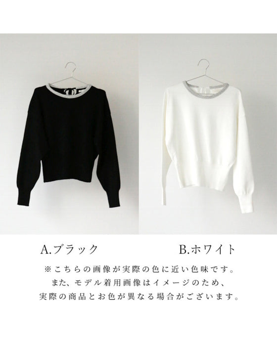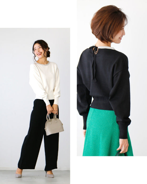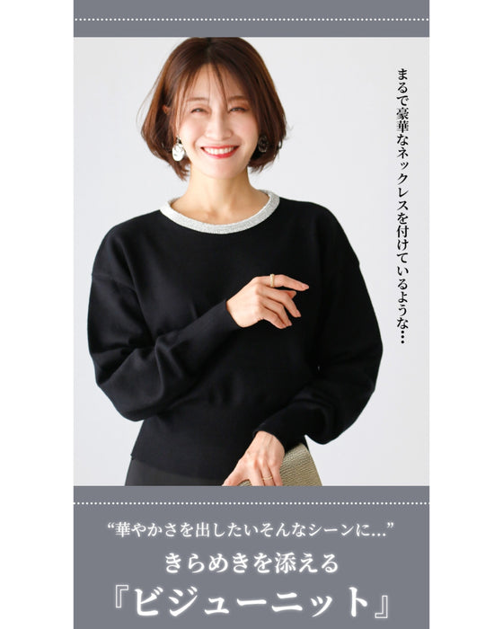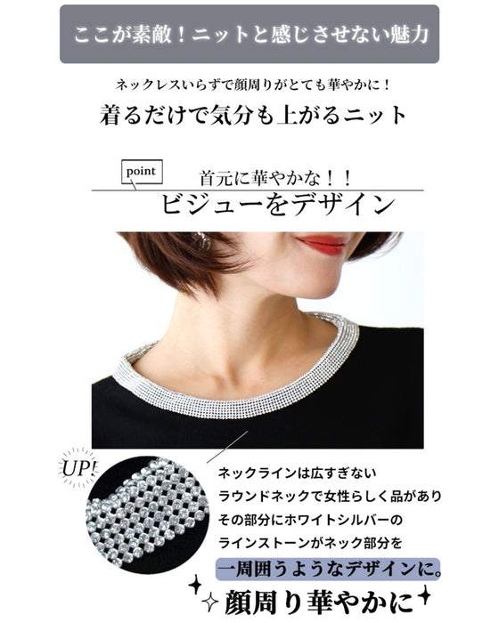 ◇◇ニット ビジューニット トップス 長袖 ビジュー キラキラ 袖コン 華やか ネックレス風 ブラック ホワイト 袖ポワン お呼ばれ ハイゲージ 上品 レディース フリーサイズ Ehre style スタイル エーレスタイル 小柄さんもOK Ehrestyle