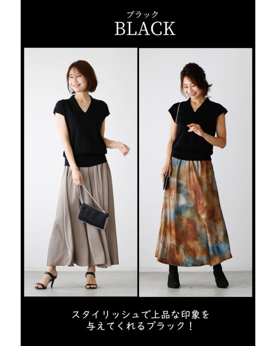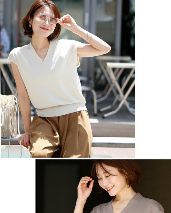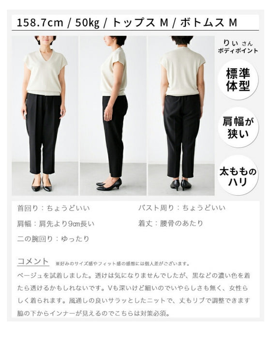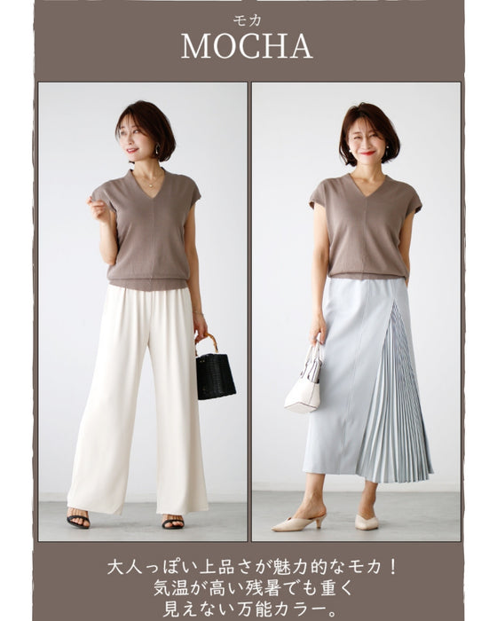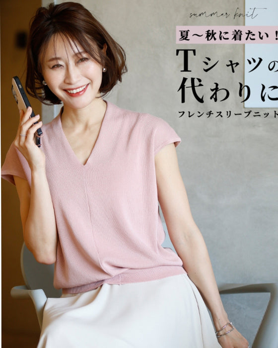 トップス サマーニット フレンチスリーブ Vネック ゆったり 綺麗目 ベージュ Beige ブラック Black ピンク Pink モカ Mocha ミント Mint 黒 茶 緑 シンプル ナチュラル レディース ファッション Ehre style スタイル エーレスタイル 夏 小柄さんもOK Ehrestyle
