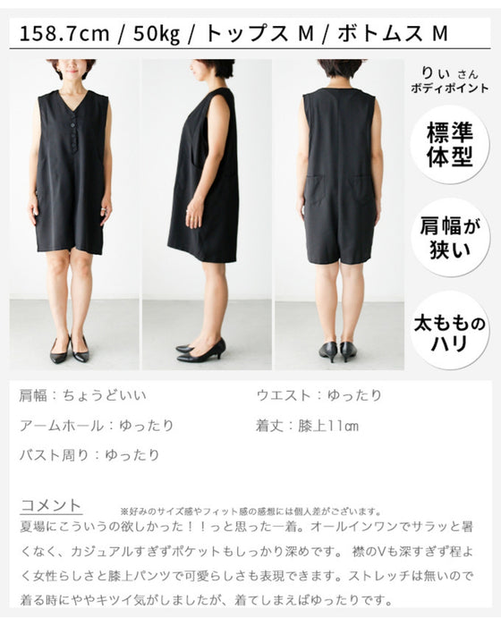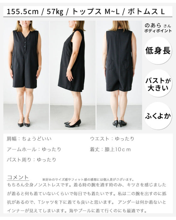 オールインワン サロペット パンツ 体型カバー 大人綺麗 リゾート Aライン ゆったり ブラック BLACK 黒 ベージュ BEIGE 夏 秋 旅 旅行 リゾート カジュアル レディース ファッション Vネック Ehre style スタイル エーレスタイル 小柄さんもOK Ehrestyle